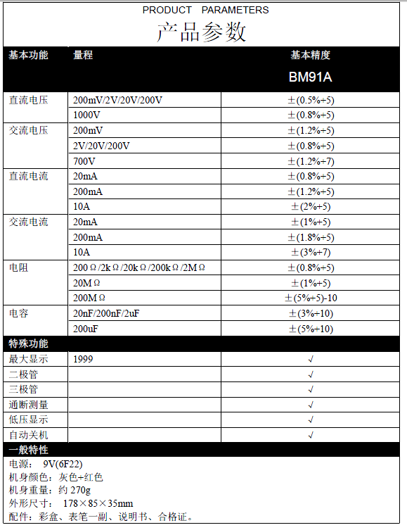 產品展示 新品推薦 數字鉗形表 濱江鉗形表 漏電流鉗形表 數字多用表 絕緣電阻表 接地電阻測試儀 紅外測溫儀 數字溫度計 其它 產品展示 > 數字多用表 > 立即購買 價格 ¥72 配送:快遞免運費 | 48小時內發貨 說明書下載 BM91A數字多用表 返回