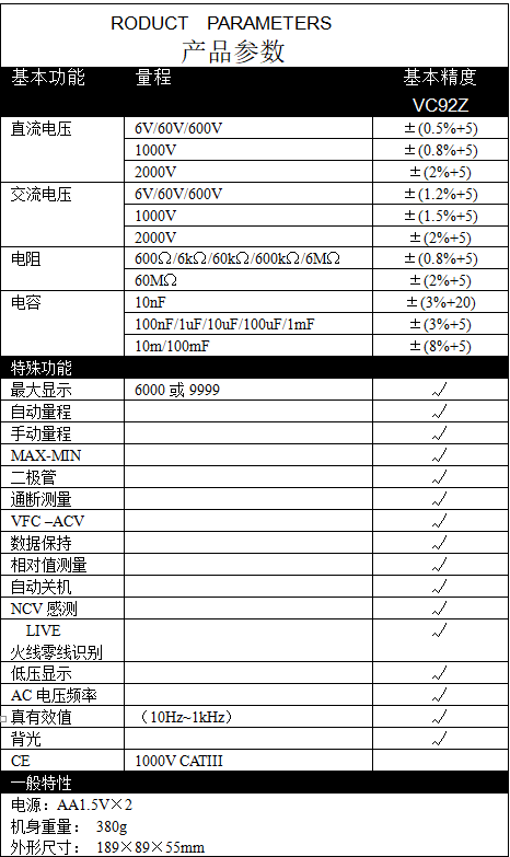 產品展示 新品推薦 數字鉗形表 濱江鉗形表 漏電流鉗形表 數字多用表 絕緣電阻表 接地電阻測試儀 紅外測溫儀 數字溫度計 其它 產品展示 > 新品推薦 > 立即購買 價格 ¥208 配送:快遞免運費 | 48小時內發貨 說明書下載 VC92Z-2kV光伏、礦用自動量程萬用表 返回